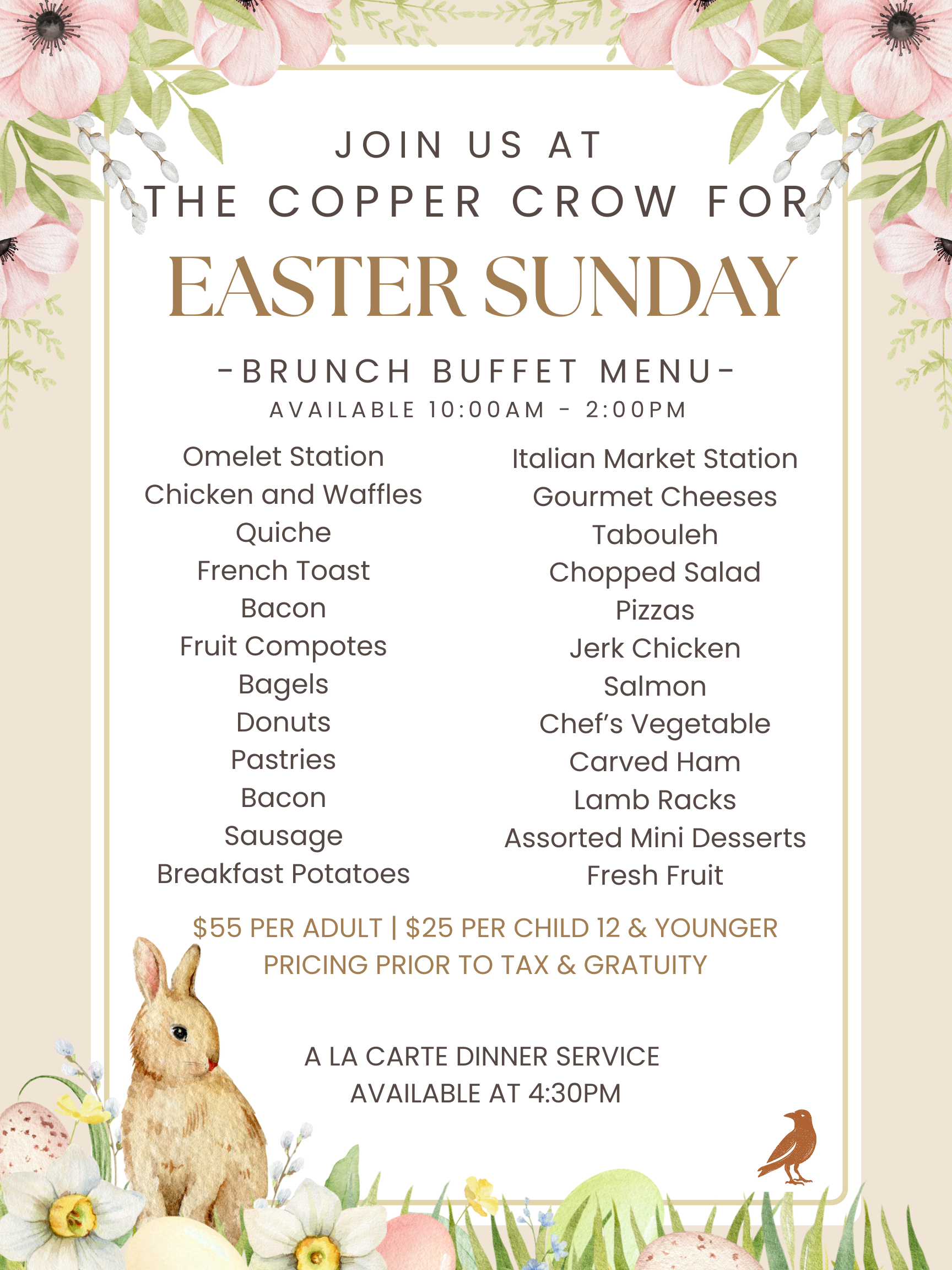We chose a crow for our restaurant as a symbol of good things to come. With the ability to see into the future, the crow is a daily reminder to us to lead the way in culinary trends and constantly transform our approach to the modern American restaurant.